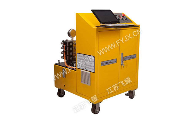 本系统是由1台高压泵站、控制阀组、液压油缸、位移监测装置、压力检测装置和1套电气控制装置组成。